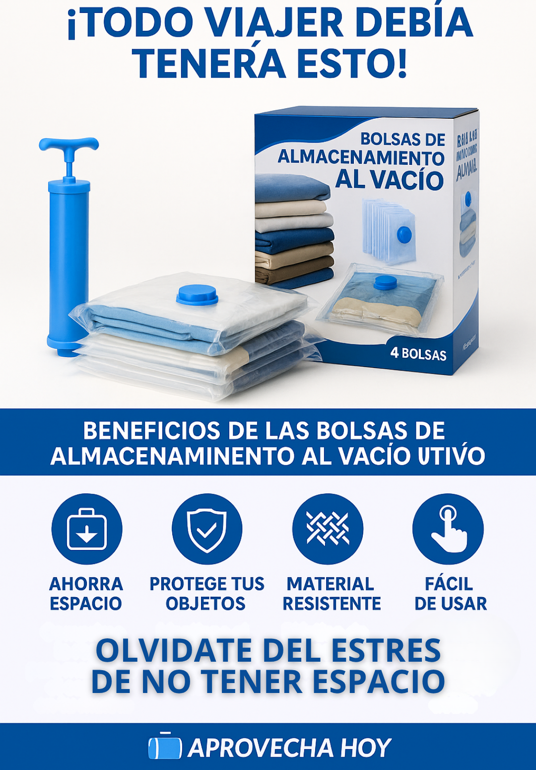 Puedes guardar ropa de temporada, cobijas, sábanas, toallas, peluches, y cualquier textil que necesite compresión y protección