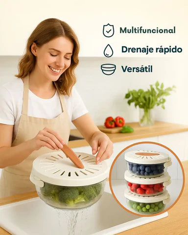¿Cansada de usar mil recipientes para lavar y guardar tus frutas o verduras ?