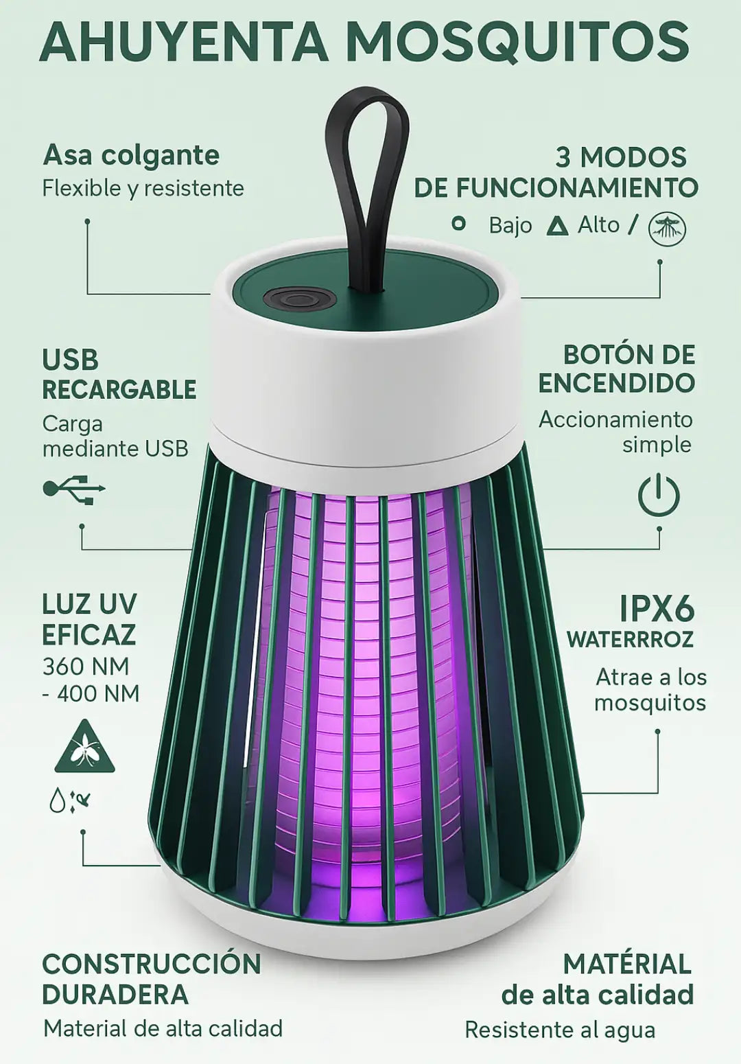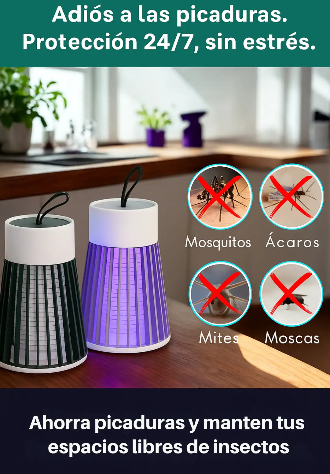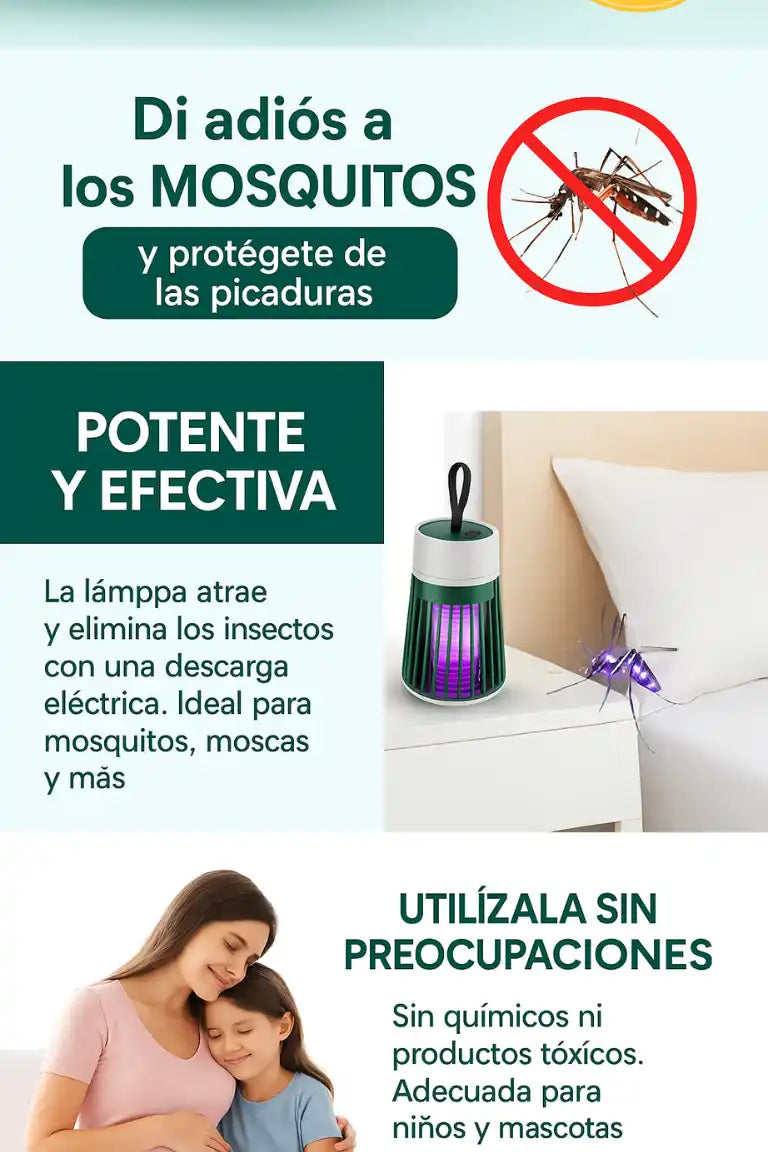Si,esta lampara no los espanta, los elimina con una carga electrica segura y efectiva gracias a la luz atrayente, ideal para zancudos, moscas y otros insectos