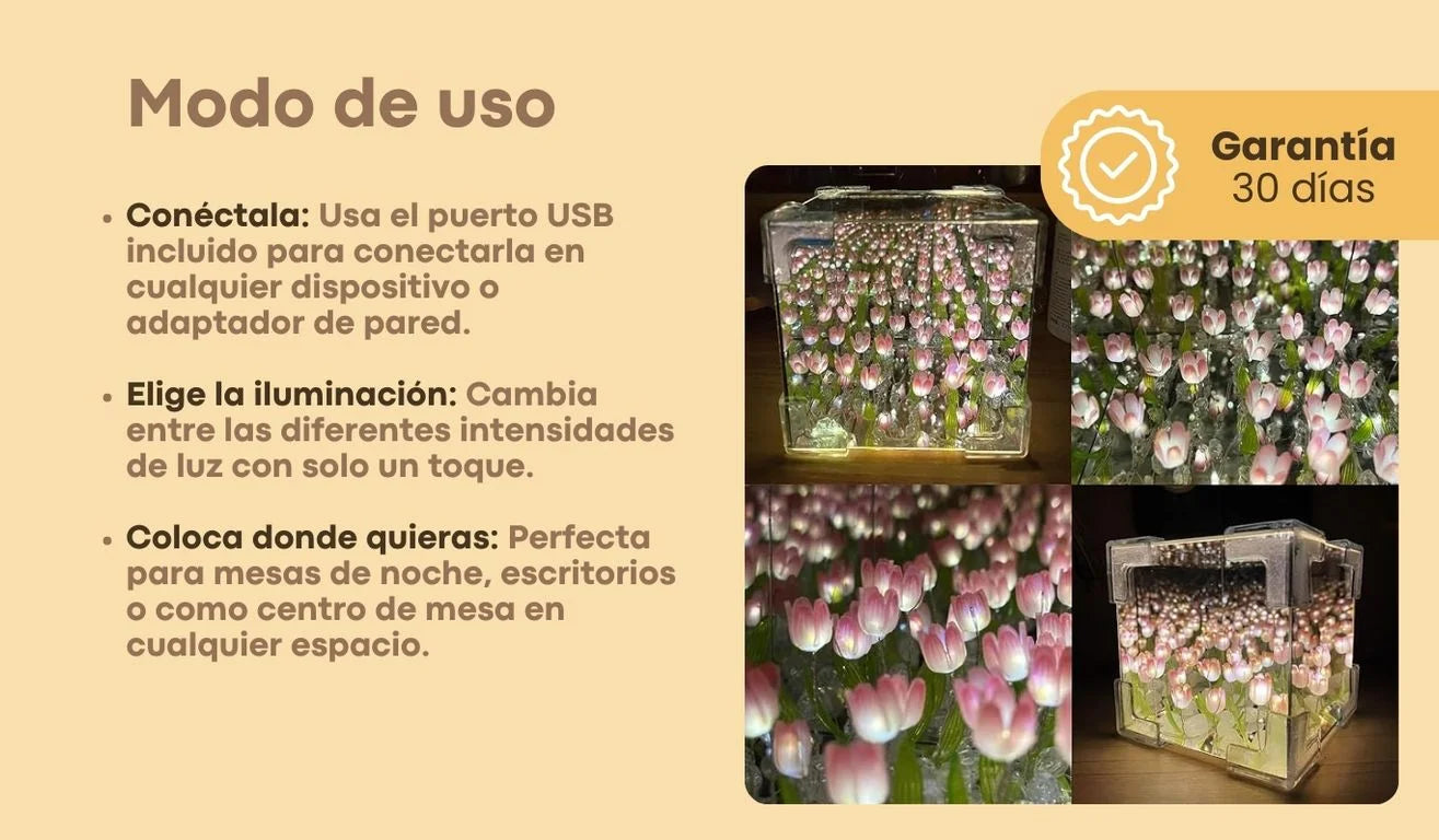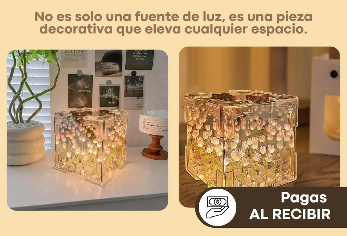 ¡Últimas unidades disponibles! No pierdas la oportunidad de obtener tu lampara de tulipanes infinitos en forma de cubo con descuento antes de que se agoten.