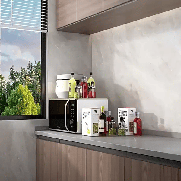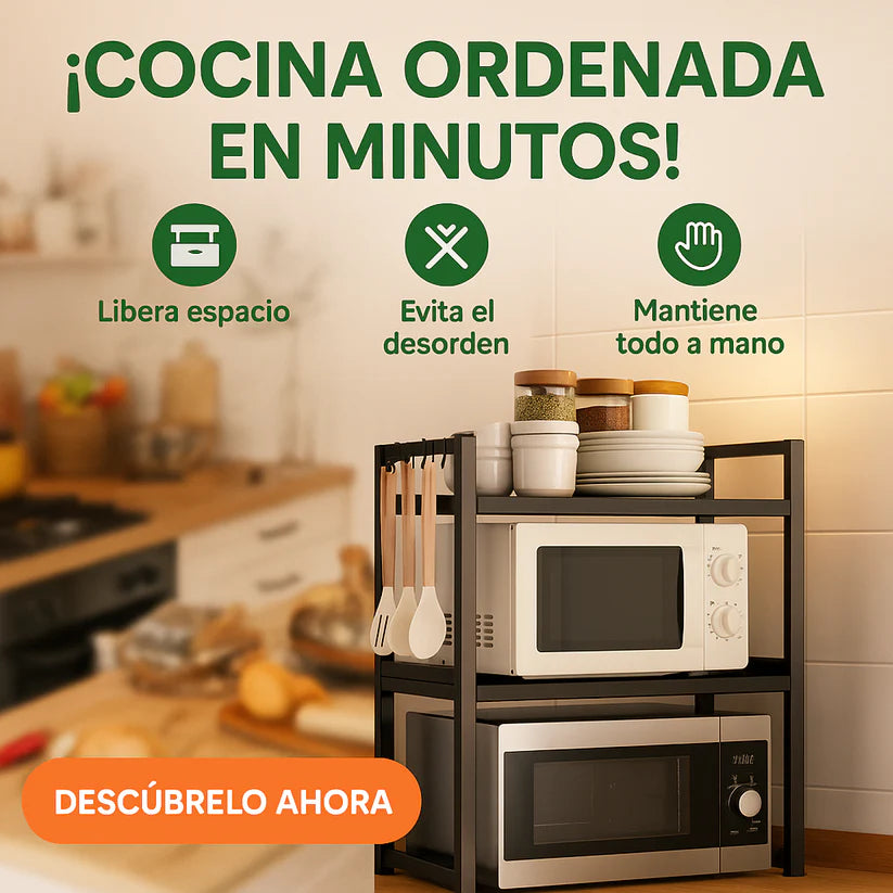 Organiza tu microondas y utensilios en un solo lugar con el estante extensible más resistente del mercado.