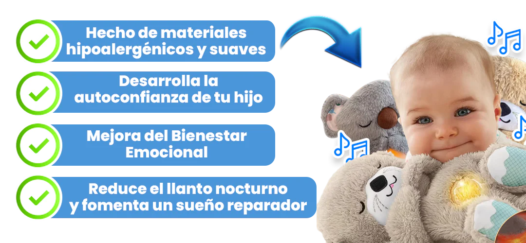 Esta adorable nutria ofrece hasta 30 minutos de música y sonidos personalizables, estimulando los sentidos del bebé con 11 descubrimientos sensoriales. Con tejidos extra suaves y fácil mantenimiento, este producto es el compañero perfecto para un descanso tranquilo y seguro.
